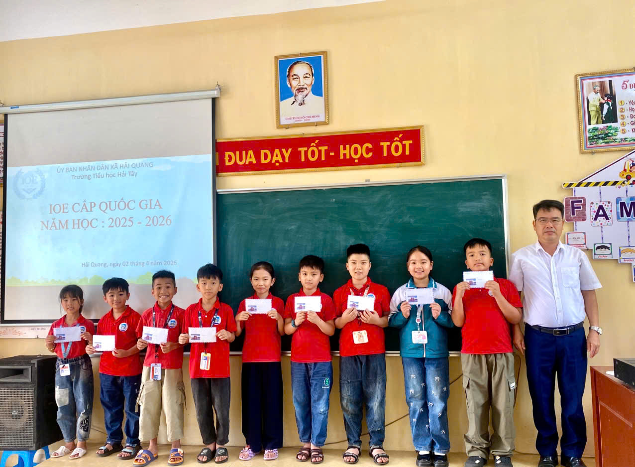Sáng nay, ngày 02/04/2026, tại Trường Tiểu học Hải Tây, các gương mặt xuất sắc nhất từ khối 3 đến khối 5 đã chính thức bước vào vòng thi Olympic Tiếng Anh (IOE) cấp Quốc gia – sân chơi trí tuệ lớn nhất trong năm.