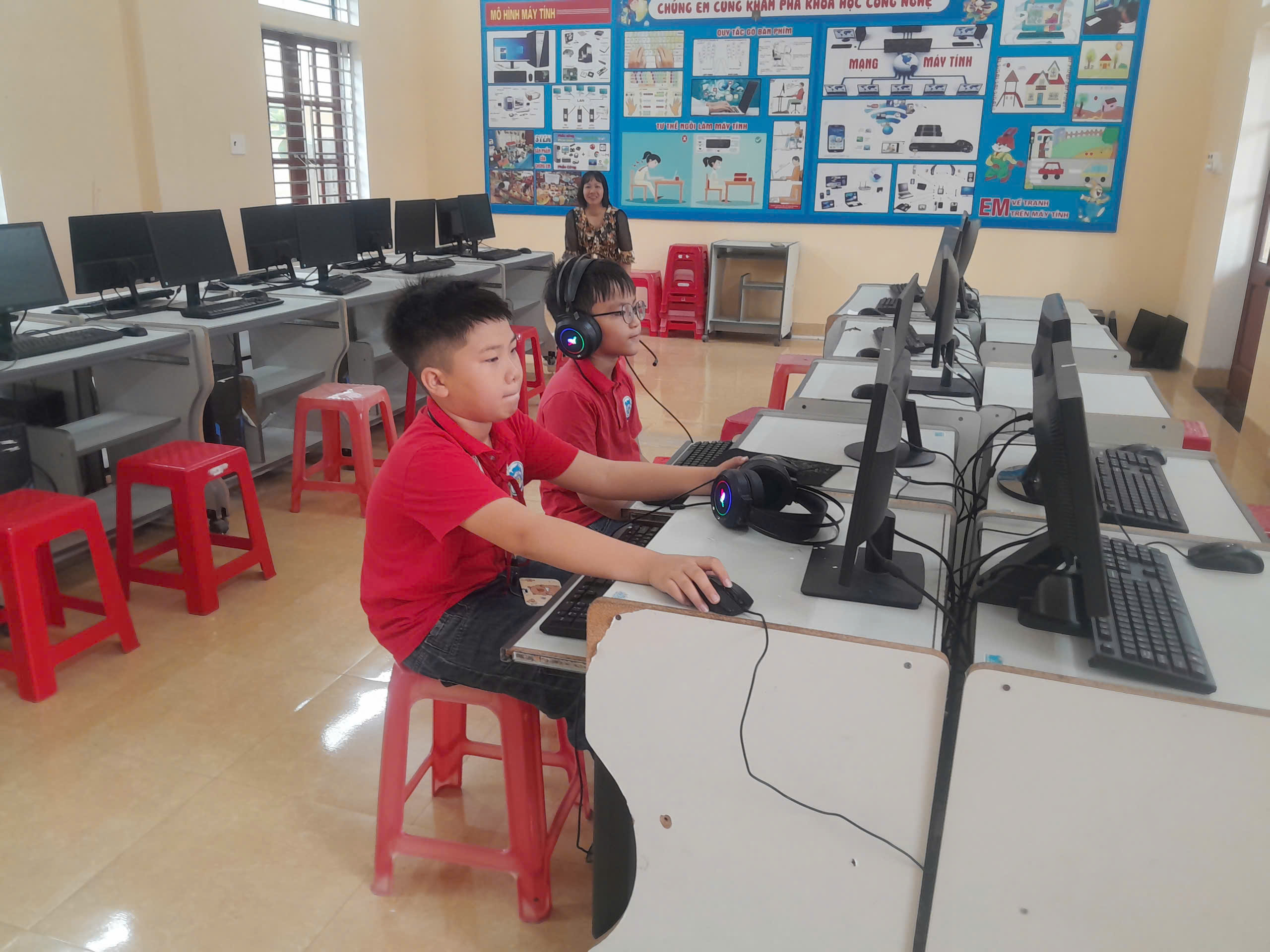 Vượt qua hàng ngàn thí sinh ở các vòng thi trước, 9 học sinh trường Tiểu học Hải Tây không chỉ mang theo kiến thức vững vàng mà còn là sự tự tin, thuần thục trong kỹ năng công nghệ. Với sự nghiêm túc, tập trung cao độ, những ngón tay lướt nhanh trên bàn phím là minh chứng cho sự chuẩn bị chu đáo và ý chí quyết tâm cao độ của thầy và trò nhà trường.