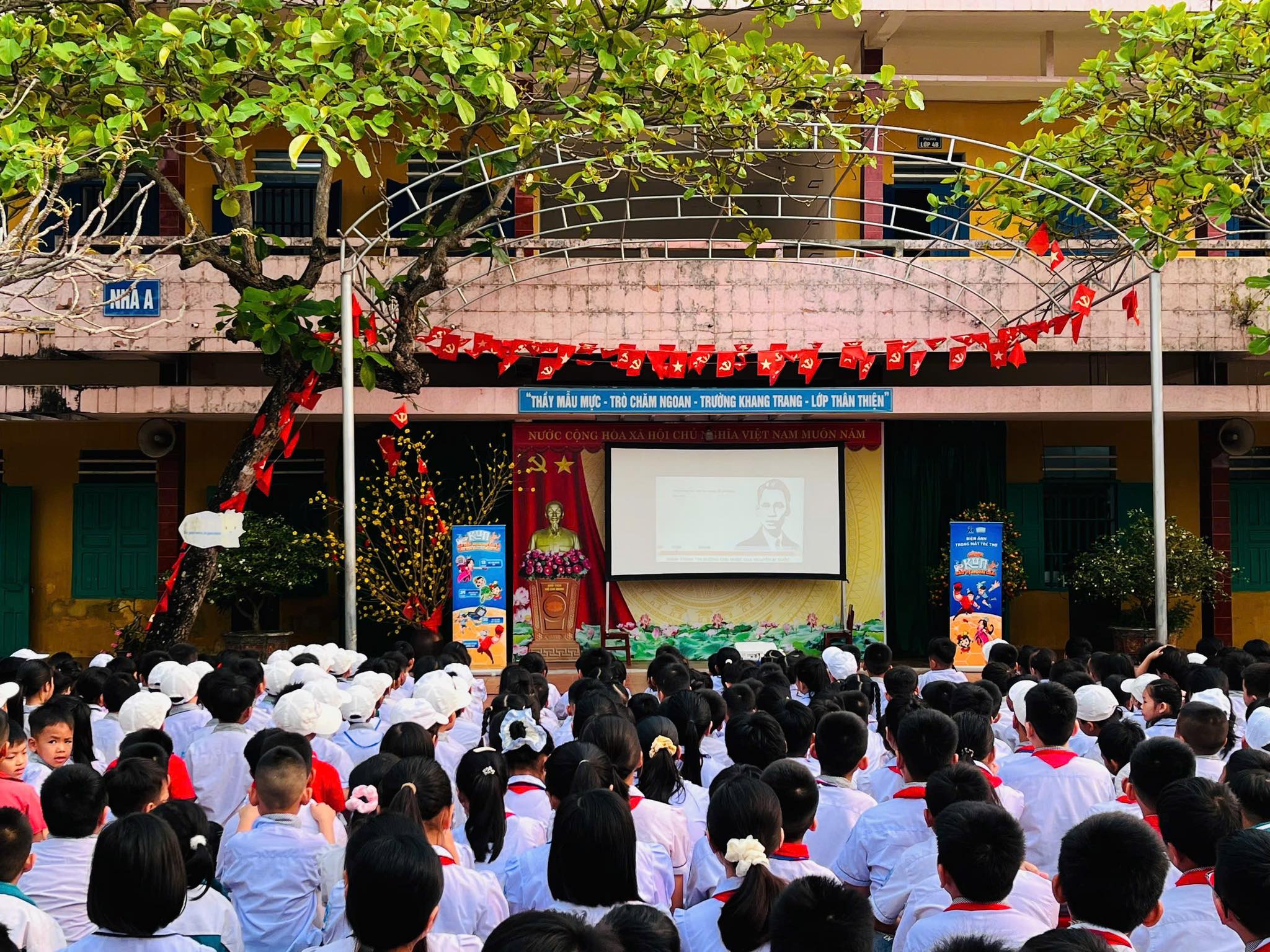 Mở đầu là hoạt động xem phim tại sân trường, thu hút sự tham gia của 606 học sinh. Bộ phim “Hành trình cứu nước của Nguyễn Ái Quốc” đã giúp các em hiểu hơn về cuộc đời, lý tưởng và hành trình tìm đường cứu nước của Bác Hồ kính yêu, từ đó bồi dưỡng lòng yêu nước và niềm tự hào dân tộc.