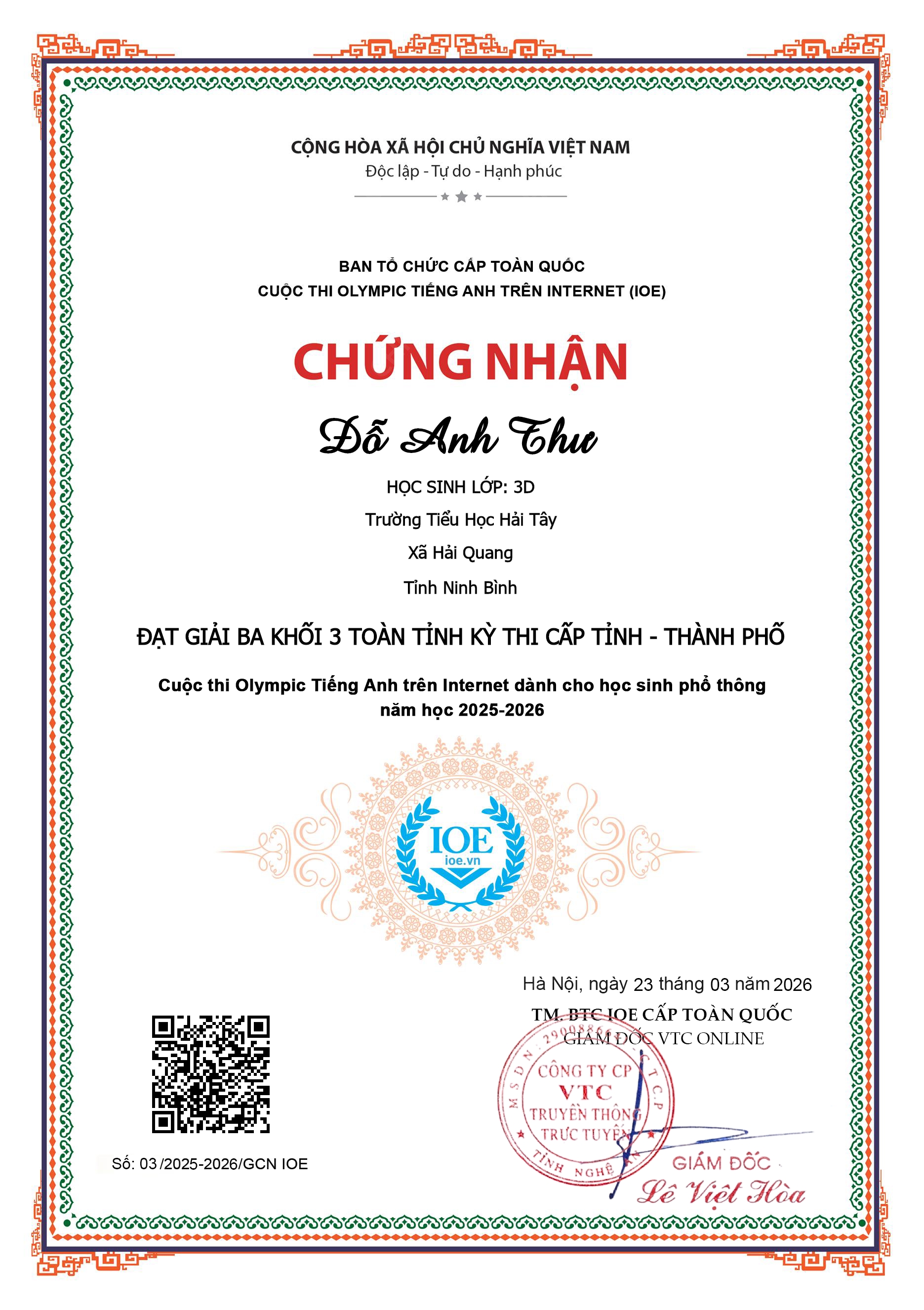 VINH DANH HỌC SINH TRƯỜNG TIỂU HỌC HẢI TÂY
