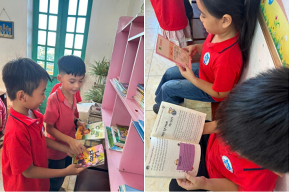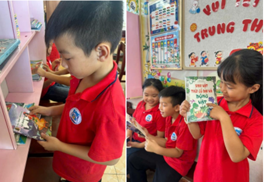Đặc biệt, hoạt động đọc sách trong thư viện lớp được duy trì xuyên suốt cả tuần, giúp các em hình thành thói quen đọc sách mỗi ngày, bồi đắp tình yêu tri thức và tinh thần học tập suốt đời.