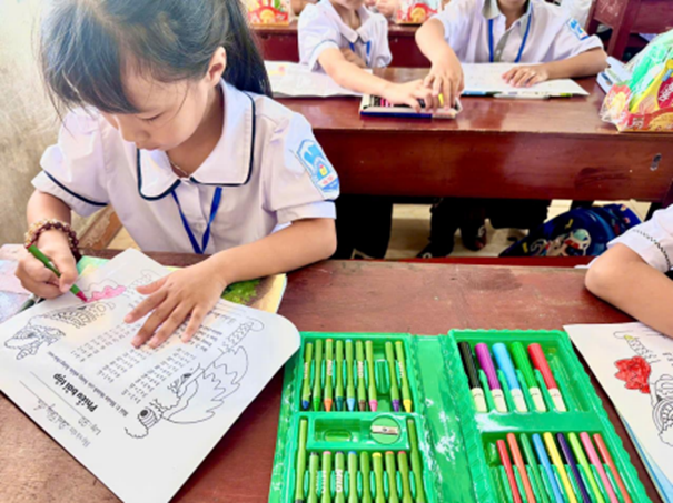 Bên cạnh đó, các bạn nhỏ còn được tô màu tranh và làm phiếu bài tập theo chủ đề Trung thu, thỏa sức sáng tạo, gửi gắm ước mơ trong từng bức tranh đầy sắc màu.
