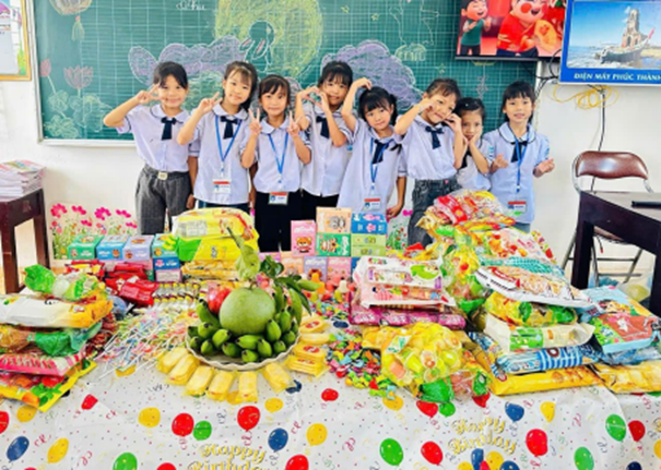 Sau những hoạt động học tập bổ ích, các em cùng nhau phá cỗ Trung thu, thưởng thức bánh kẹo, chia sẻ niềm vui trong không khí đầm ấm và rộn ràng tiếng cười.